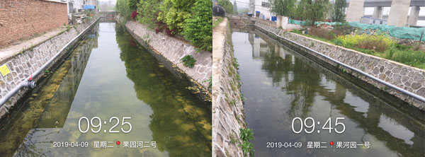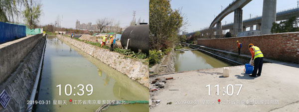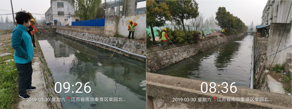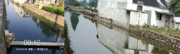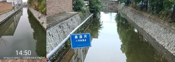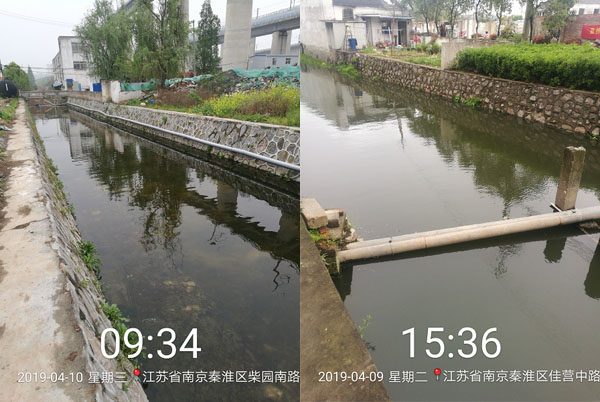 秦淮區(qū)果園河水體黑臭應(yīng)急治理工程,于2019年3月29日啟動。果園河應(yīng)急治理周期為30日歷天治理期內(nèi),采用RhP體系技術(shù),運(yùn)用多種實(shí)施措施,僅3天水體臭味消除、水色轉(zhuǎn)為綠色、透明度提升到清澈見底。至4月10日,果園河水生態(tài)系統(tǒng)正在良性發(fā)展,水生態(tài)多樣性開始呈現(xiàn)、水質(zhì)指標(biāo)氨氮下降至5.0mg/L以下、溶解氧提升至4.0mg/L以上。
